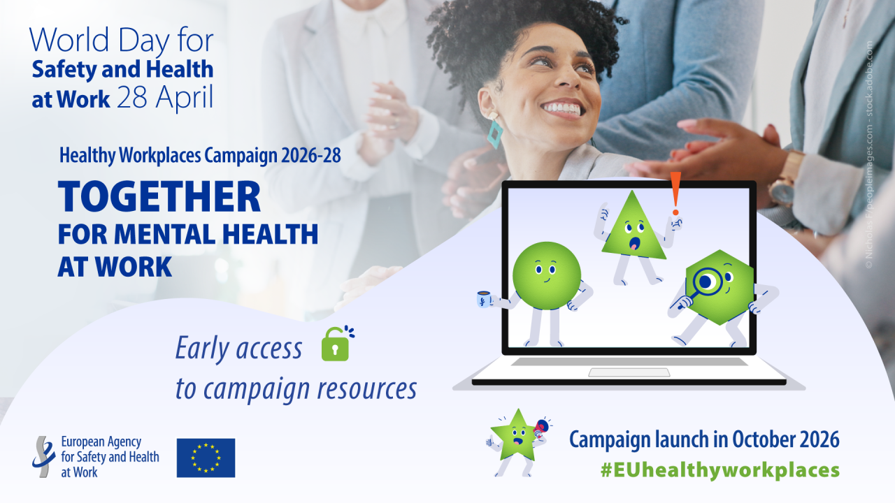 Currently in English, the site provides an early overview of the 2026 – 2028 Healthy Workplaces Campaign ‘Together for mental health at work’ objective: to raise awareness about the impact of psychosocial risks and promote the creation of supportive, and mentally healthy work environments across all sectors.